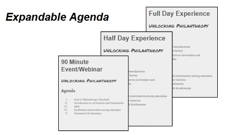Education – Unlocking Philanthropy is an educational sensemaking experience about fundraising in the nonprofit sector. We lead you through an overview of fundraising through a dynamic series of exercises and lessons. We contextualize the fundamental truths of fundraising to the details of participants’ organizations to ensure that every attendee leaves with a clearer vision about what they need to do to maximize their assets and welcome new donors.Â
